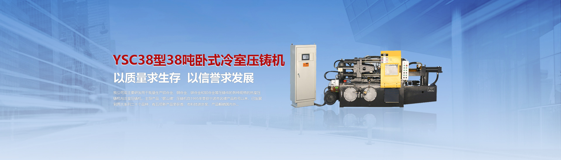我司現(xiàn)主要研發(fā)用于批量加工生產(chǎn)鋁合金、銅合金、鋅合金和鉛合金等壓鑄件的各種型號規(guī)格的熱室/冷室壓鑄機(jī),主導(dǎo)產(chǎn)品“銀山牌”壓鑄機(jī)自1995年榮獲寧波市名牌產(chǎn)品稱號以來,已發(fā)展到兩大系列二十個品種,有五項(xiàng)產(chǎn)品曾榮獲省、市科技進(jìn)步獎,產(chǎn)品暢銷國內(nèi)外。歷年來向用戶提供了8000余臺設(shè)備,為中國的壓鑄工業(yè)發(fā)展作出了重要的貢獻(xiàn),企業(yè)獲得了很高的信譽(yù)度。